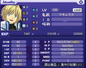 微妙に~AGIがあがったけど、狩り行って見てあまり実感わかず・・・。