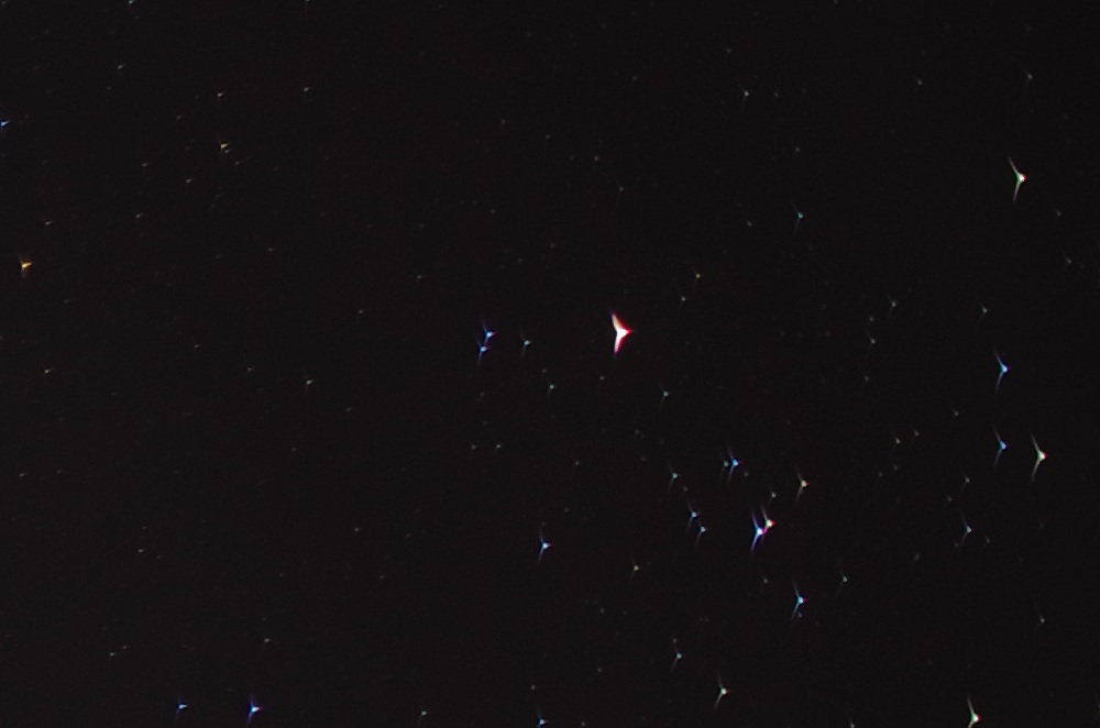 ∞にすると、若干ピントがズレ、小さい星は写らなくなる。